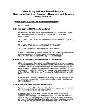 Read MSHA - Mine Inspector Hiring Program - Questions and Answers Pdf PDF